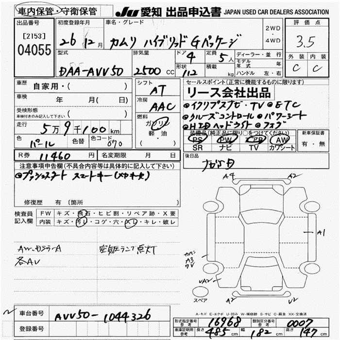 | HYBRID G PACKAGE | AVV50 | 2AR-FXE | Передний | CVT | 2.493 л | 160 л.с | AИ-92 | 3 413 782 ¥ | |