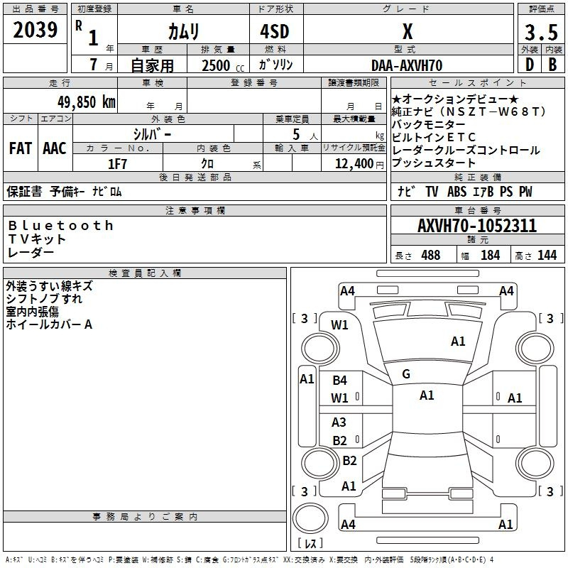 WS LEATHER PACKAGE AXVH70 A25A-FXS Передний CVT 2.487 л 178 л.с AИ-92 4 450 000 ¥
