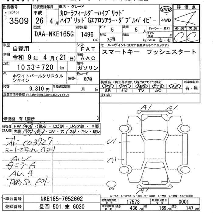 HYBRID G AEROTOURER W。゚B NKE165G 1NZ-FXE Передний CVT 1.496 л 74 л.с AИ-92 2 406 857 ¥