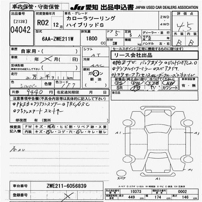 HYBRID G-X PLUS ZWE211W 2ZR-FXE Передний CVT 1.797 л 98 л.с AИ-92 2 516 800 ¥