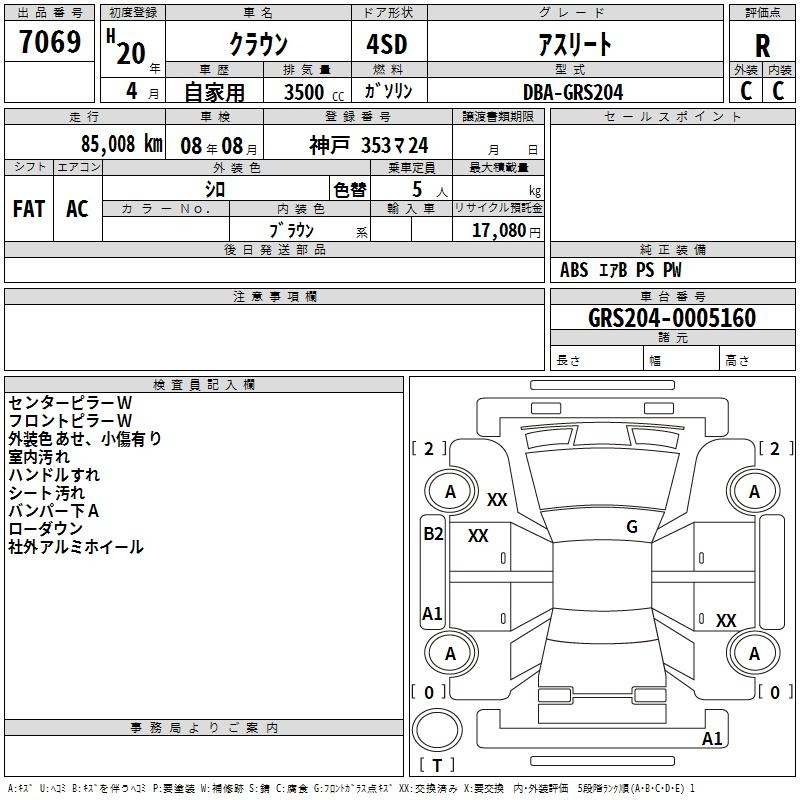 3.5 ATHLETE G PACKAGE GRS204 2GR-FSE Задний 6AT 3.456 л 315 л.с AИ-95 5 670 000 ¥