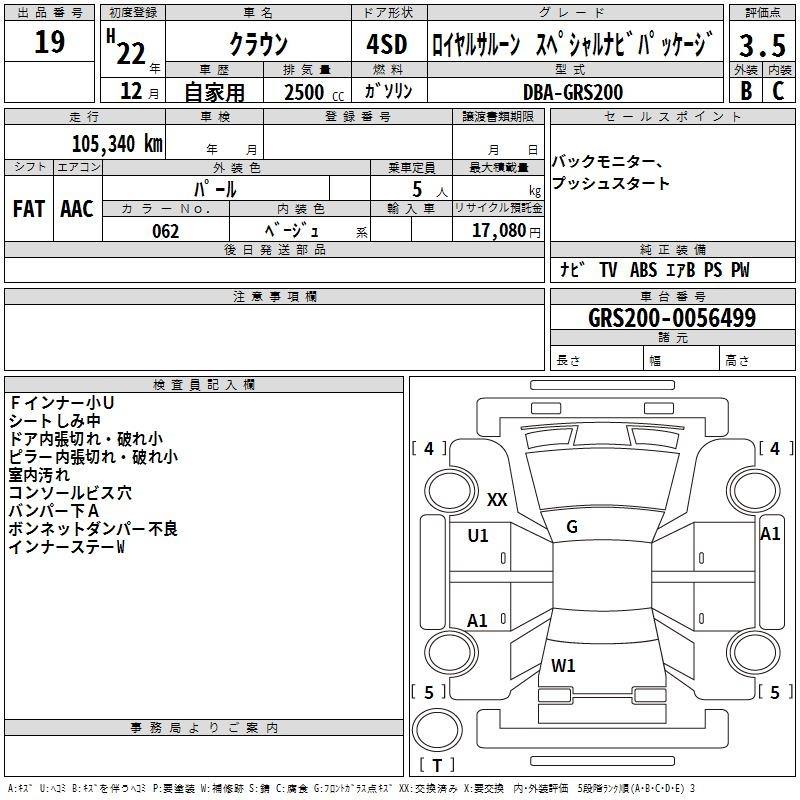 ROYAL SALOON SPECIAL NAVI PACKAGE GRS200 4GR-FSE Задний 6AT 2.499 л 203 л.с AИ-92 3 950 000 ¥