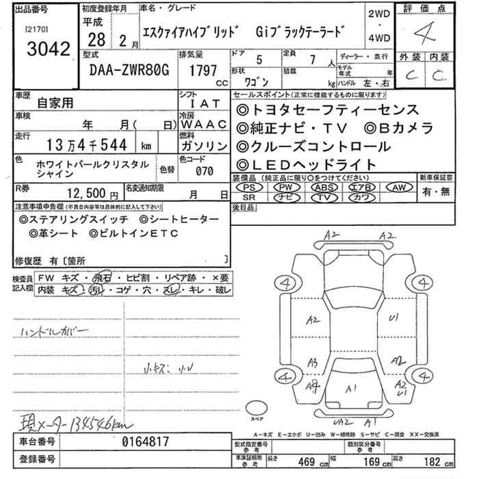 XI ZRR80G 3ZR-FAE Передний CVT 1.986 л 152 л.с AИ-92 2 823 000 ¥
