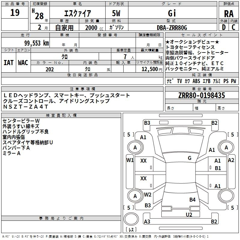 XI ZRR80G 3ZR-FAE Передний CVT 1.986 л 152 л.с AИ-92 2 823 000 ¥