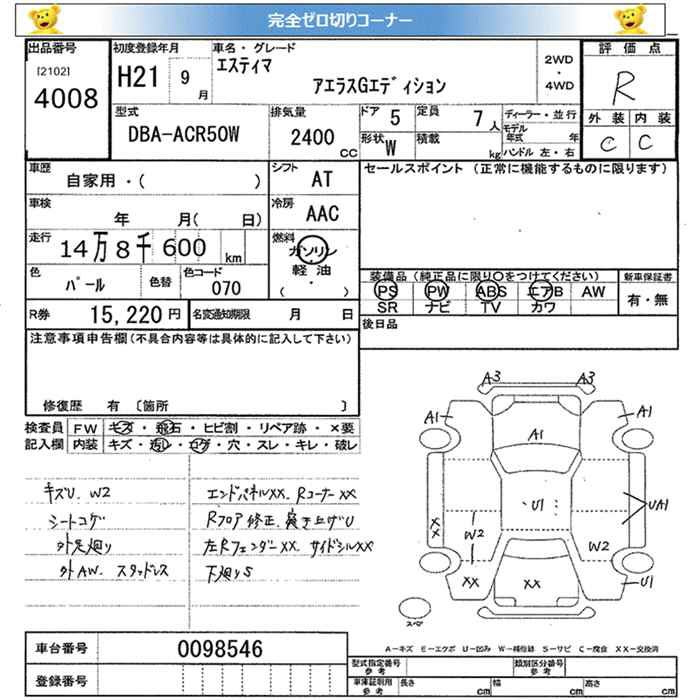 AERAS ACR50W 2AZ-FE Передний CVT 2.362 л 170 л.с AИ-92 2 960 000 ¥
