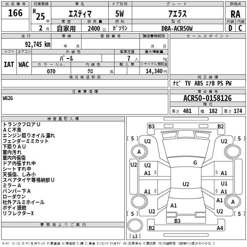 AERAS PREMIUM EDITION ACR50W 2AZ-FE Передний CVT 2.362 л 170 л.с AИ-92 3 090 000 ¥