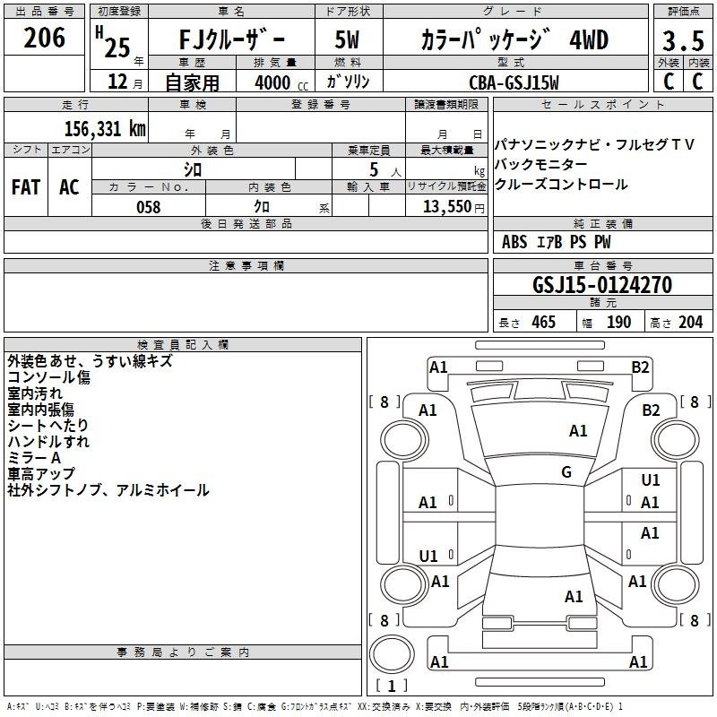 | BASE GRADE | GSJ15W | 1GR-FE | Part-time 4WD | 5AT | 3.955 л | 276 л.с | AИ-92 | 3 150 000 ¥ | |