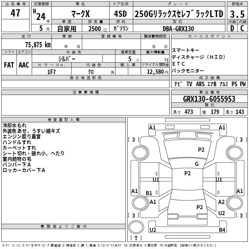250G F PACKAGE GRX130 4GR-FSE Задний 6AT 2.499 л 203 л.с AИ-92 2 440 000 ¥