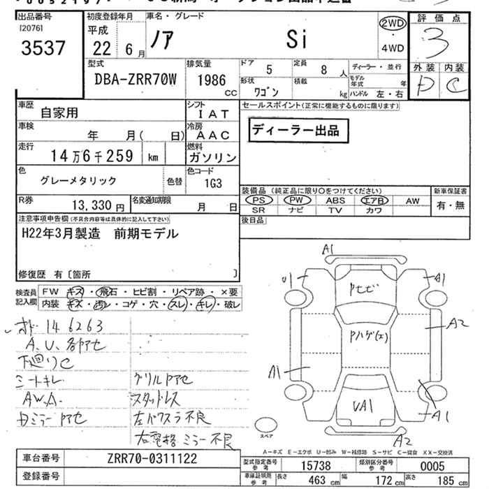 S ZRR70W 3ZR-FAE Передний CVT 1.986 л 158 л.с AИ-92 2 300 000 ¥