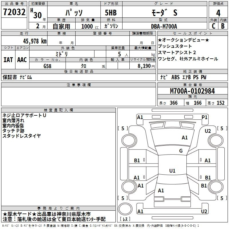 X S M700A 1KR-FE Передний CVT 0.996 л 69 л.с AИ-92 1 242 000 ¥