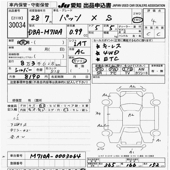 X L PACKAGE S M710A 1KR-FE Full-time 4WD CVT 0.996 л 69 л.с AИ-92 1 490 400 ¥