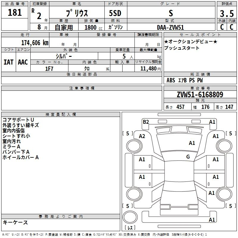 A ZVW51 2ZR-FXE Передний CVT 1.797 л 98 л.с AИ-92 2 910 000 ¥