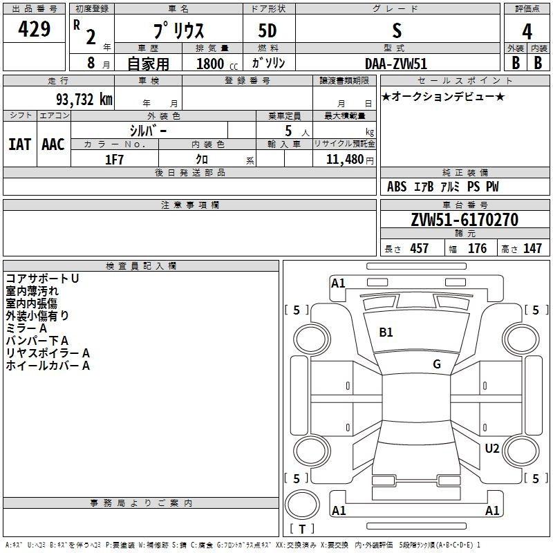A PREMIUM ZVW51 2ZR-FXE Передний CVT 1.797 л 98 л.с AИ-92 3 248 000 ¥