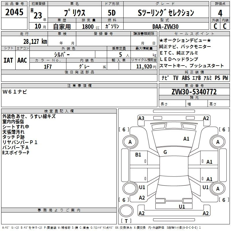 S LED EDITION ZVW30 2ZR-FXE Передний CVT 1.797 л 99 л.с AИ-92 2 360 000 ¥