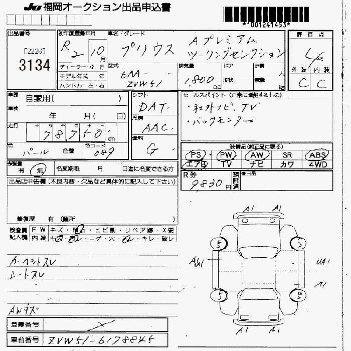 A ZVW51 2ZR-FXE Передний CVT 1.797 л 98 л.с AИ-92 2 910 000 ¥
