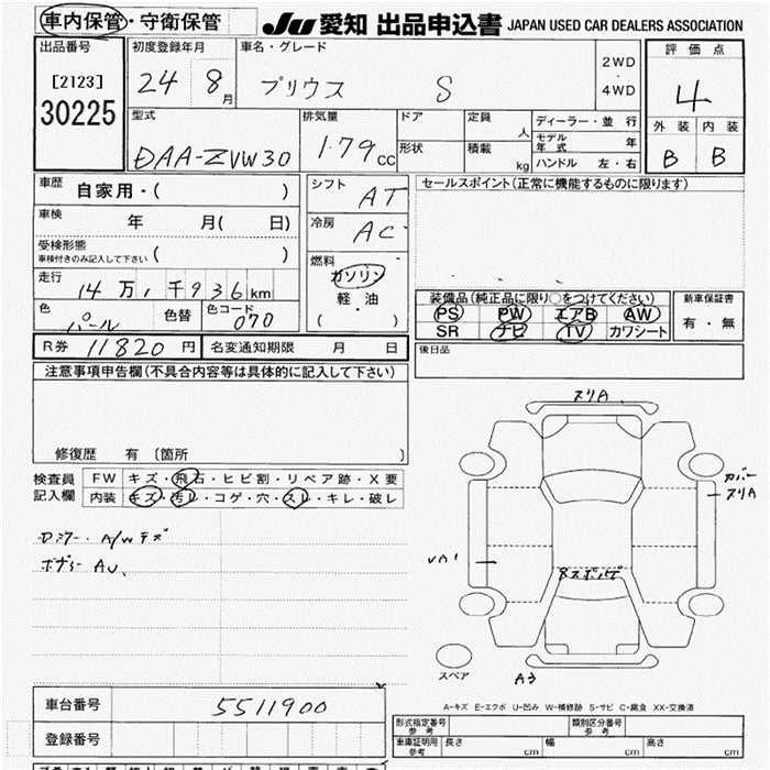 S ZVW30 2ZR-FXE Передний CVT 1.797 л 99 л.с AИ-92 2 320 000 ¥