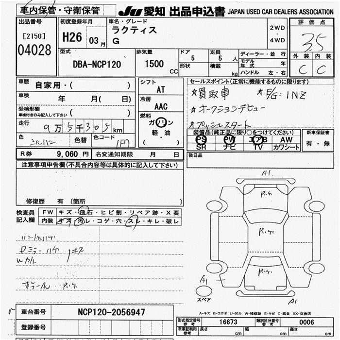 X NCP120 1NZ-FE Передний CVT 1.496 л 109 л.с AИ-92 1 620 000 ¥