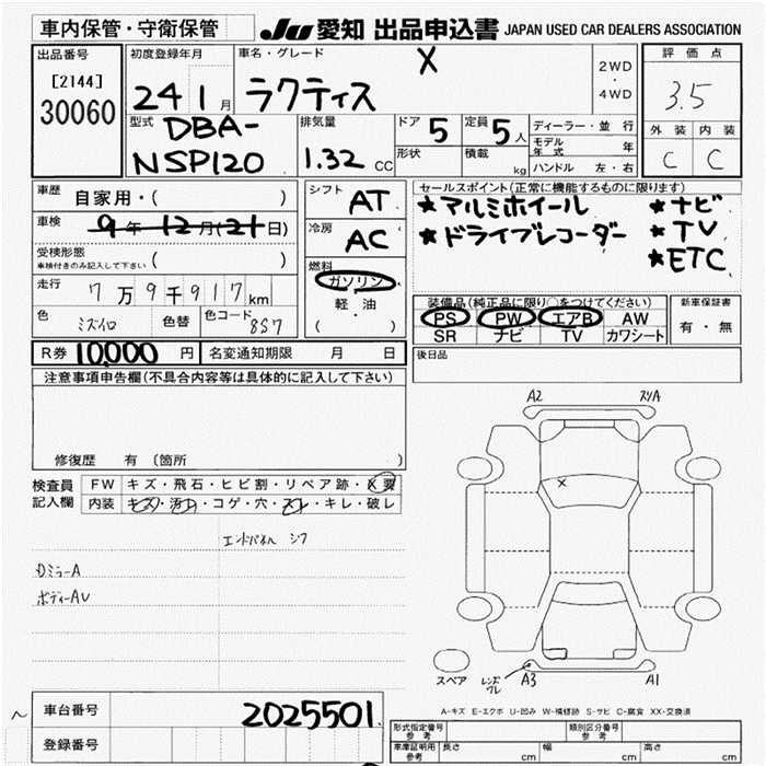 X NSP122 1NR-FE Передний CVT 1.329 л 95 л.с AИ-92 1 772 000 ¥