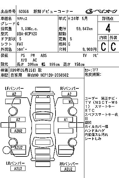 G NCP120 1NZ-FE Передний CVT 1.496 л 109 л.с AИ-92 1 710 000 ¥