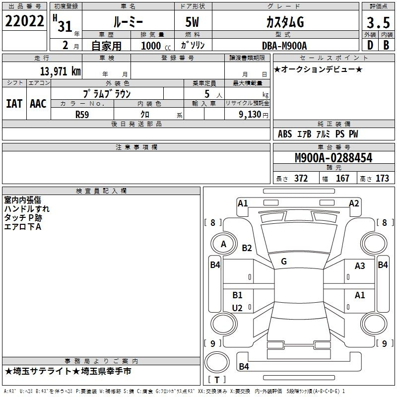 CUSTOM G-T M900A 1KR-VET Передний CVT 0.996 л 98 л.с AИ-92 2 002 000 ¥