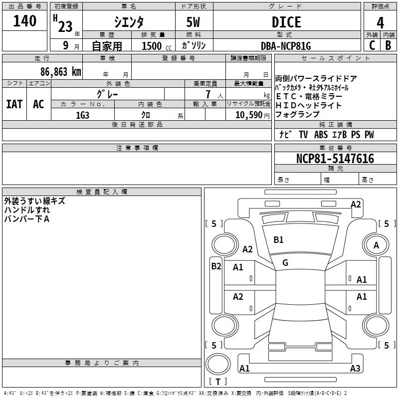 | DICE | NCP85G | 1NZ-FE | Full-time 4WD | 4AT | 1.496 л | 105 л.с | AИ-92 | 1 853 500 ¥ | |