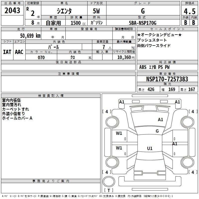 FUNBASE G NSP170G 2NR-FKE Передний CVT 1.496 л 109 л.с AИ-92 2 057 000 ¥