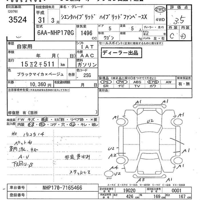 HYBRID X NHP170G 1NZ-FXE Передний CVT 1.496 л 74 л.с AИ-92 2 268 200 ¥