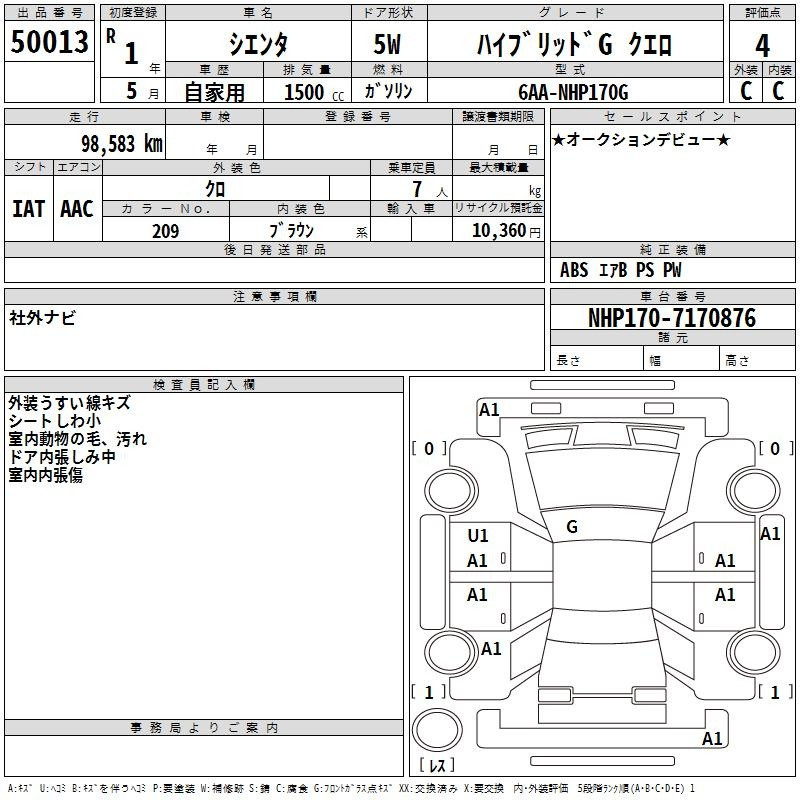 HYBRID G NHP170G 1NZ-FXE Передний CVT 1.496 л 74 л.с AИ-92 2 424 400 ¥
