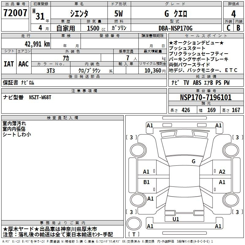 G CUERO NSP170G 2NR-FKE Передний CVT 1.496 л 109 л.с AИ-92 2 213 200 ¥