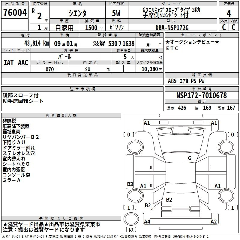 G NCP175G 1NZ-FE Full-time 4WD CVT 1.496 л 103 л.с AИ-92 2 242 000 ¥
