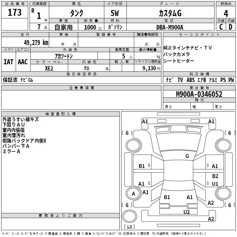 X S M900A 1KR-FE Передний CVT 0.996 л 69 л.с AИ-92 1 556 500 ¥