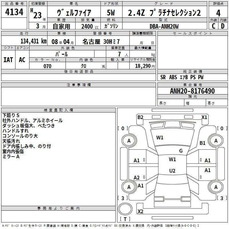 | 2.4Z PLATINUM SELECTION II TYPE GOLD II | ANH20W | 2AZ-FE | Передний | CVT | 2.362 л | 170 л.с | AИ-92 | 3 560 000 ¥ | |