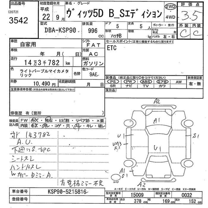 | RS | NCP131 | 1NZ-FE | Передний | 5MT | 1.496 л | 109 л.с | AИ-92 | 1 720 000 ¥ | |