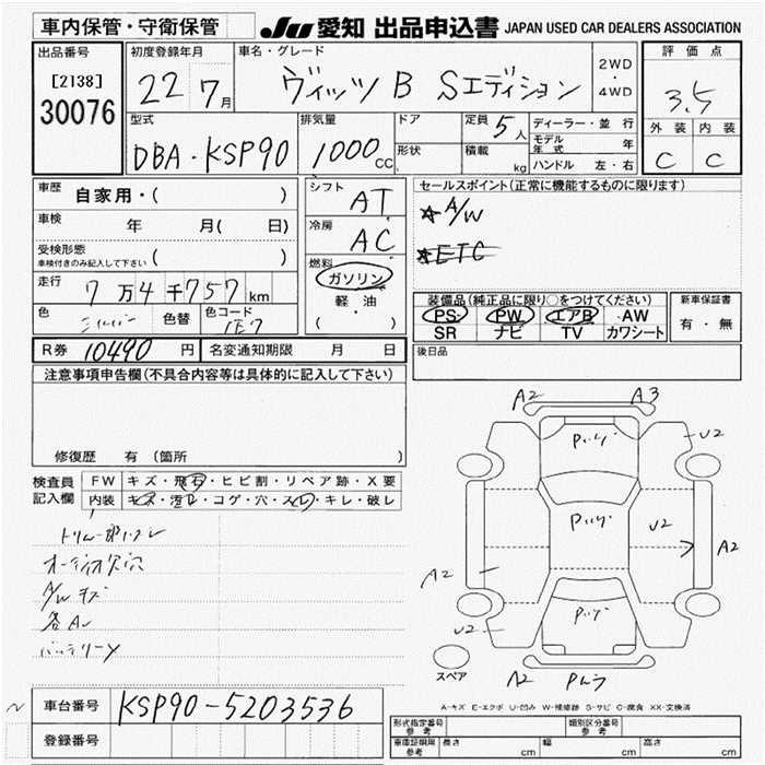B S EDITION KSP90 1KR-FE Передний CVT 0.996 л 71 л.с AИ-92 1 060 000 ¥