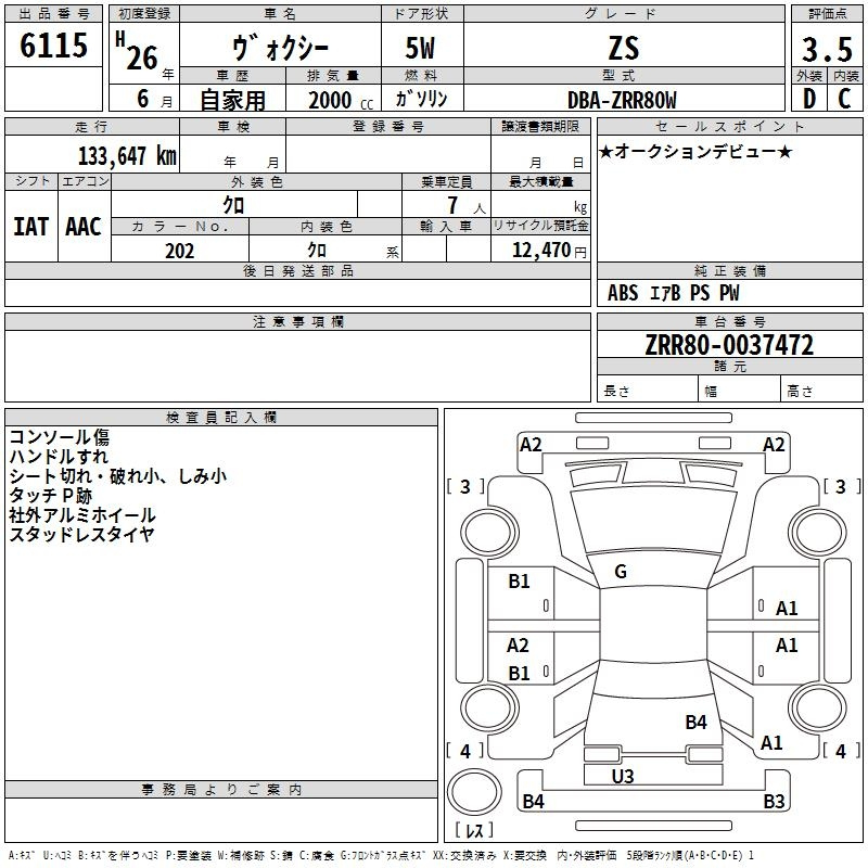 | X | ZRR80G | 3ZR-FAE | Передний | CVT | 1.986 л | 152 л.с | AИ-92 | 2 400 000 ¥ | |