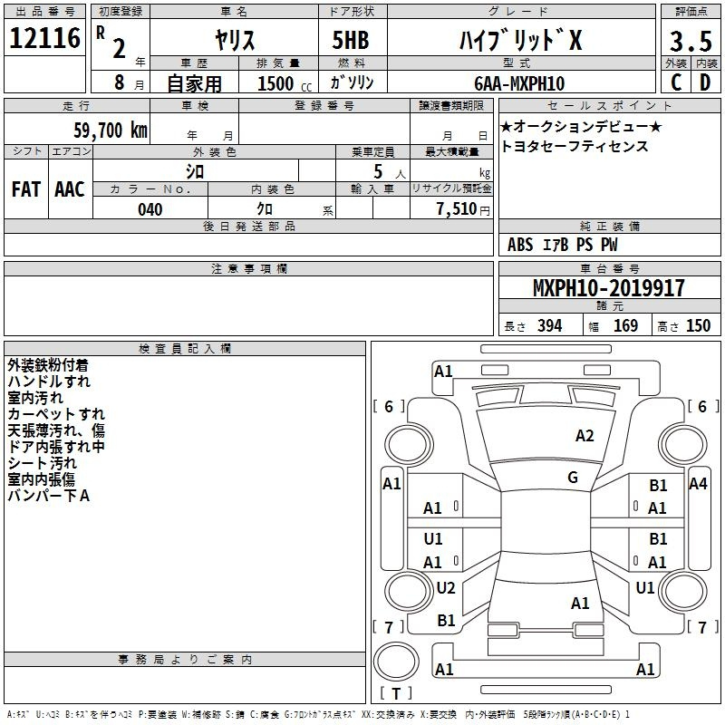 HYBRID G MXPH10 M15A-FXE Передний CVT 1.49 л 91 л.с AИ-92 2 130 000 ¥