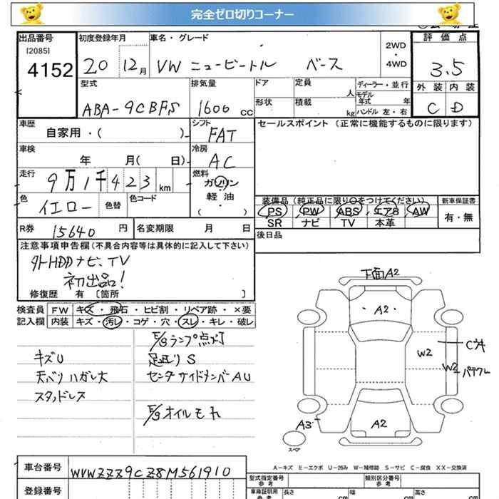 VINTAGE 9CAZJ AZJ Передний 6AT 1.984 л 116 л.с AИ-95 3 000 000 ¥